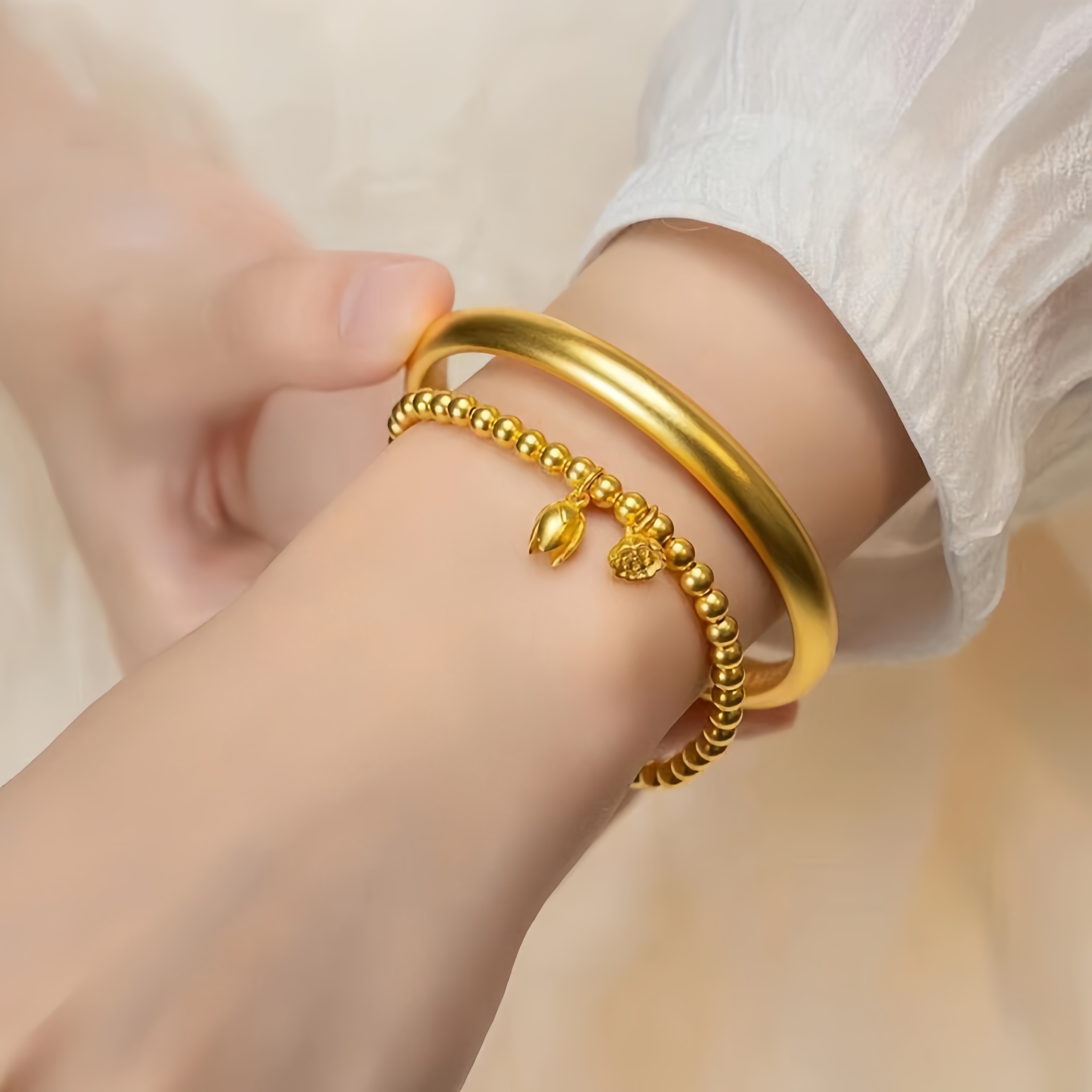 老铺古法黄金包银泥鳅背手镯女素圈莲花心经黄金镯子送女友七夕礼