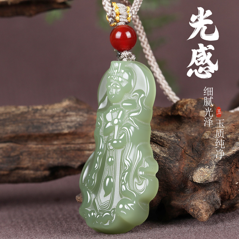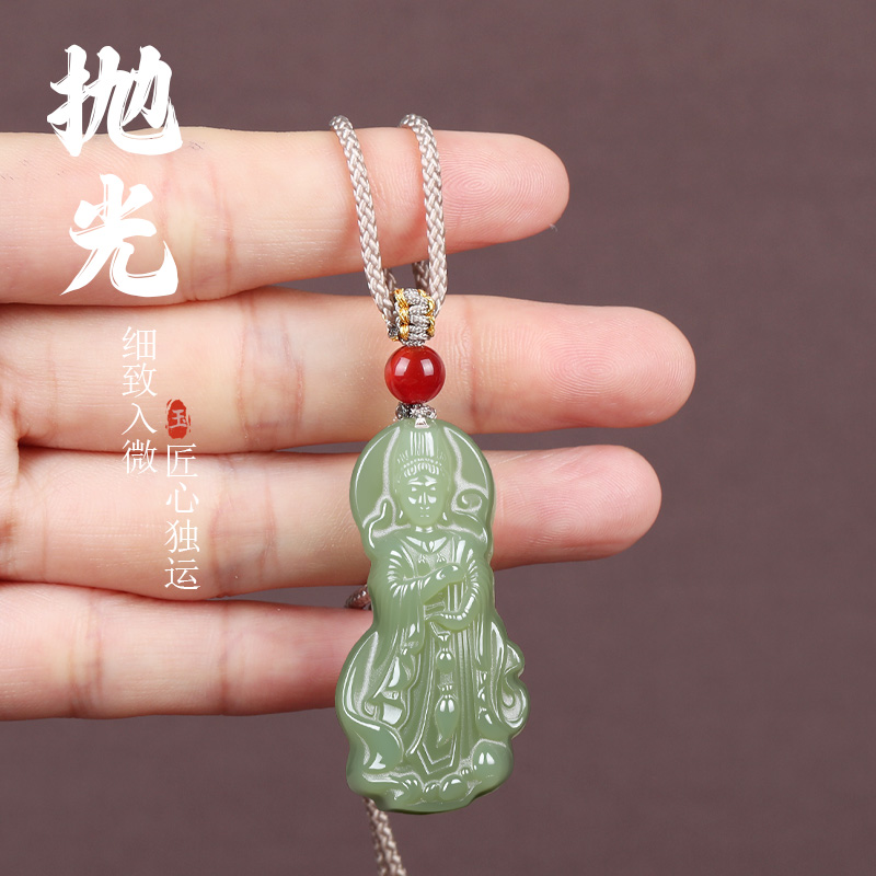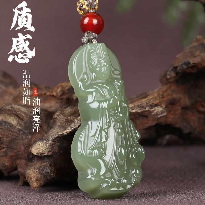 保真天然和田玉平安妈祖吊坠玉石挂件玉饰品男女款平安妈祖牌