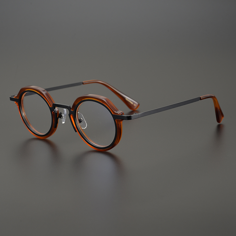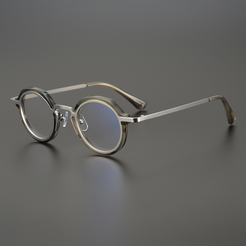 日本精英干练小圆框 高级中金板材 设计师款圆脸可配高度数近视