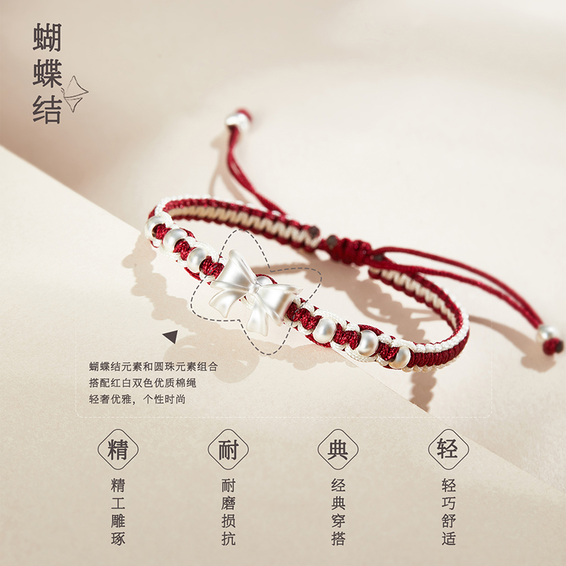 zeroline在逃公主情侣手链女纯银轻奢编织手绳本命年红绳生日礼物