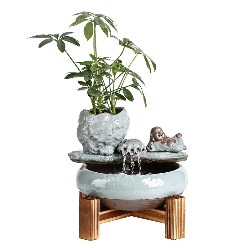 中式小型循环流水摆件加湿客厅家居电F视柜玄关办公室装饰招财礼