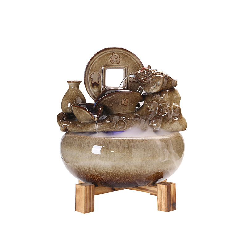 循环流水陶瓷鱼缸招财进宝生财摆件客厅办公桌面乔迁新居开业礼品
