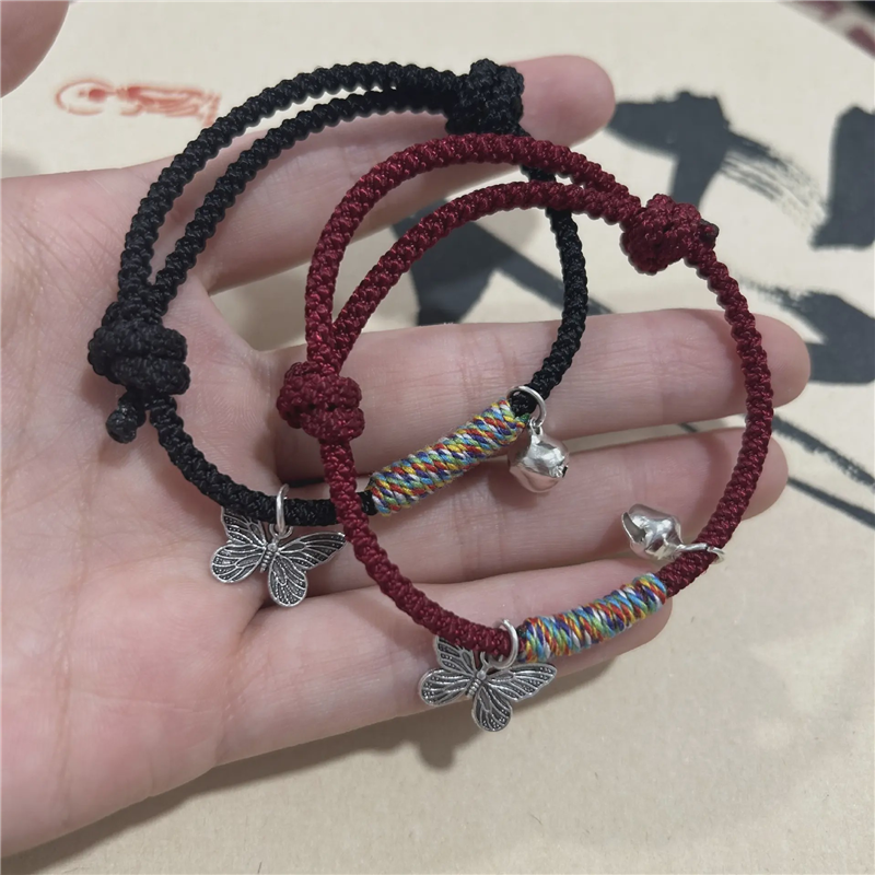 新中式ins铃铛蝴蝶手绳红绳简约学生送闺蜜情侣款手链礼
