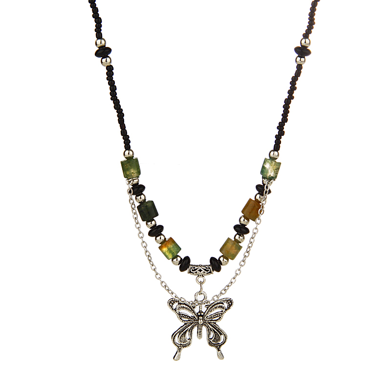 UNBEATEN新中式复古串珠蝴蝶项链女ins甜酷辣妹锁骨链毛衣链配饰
