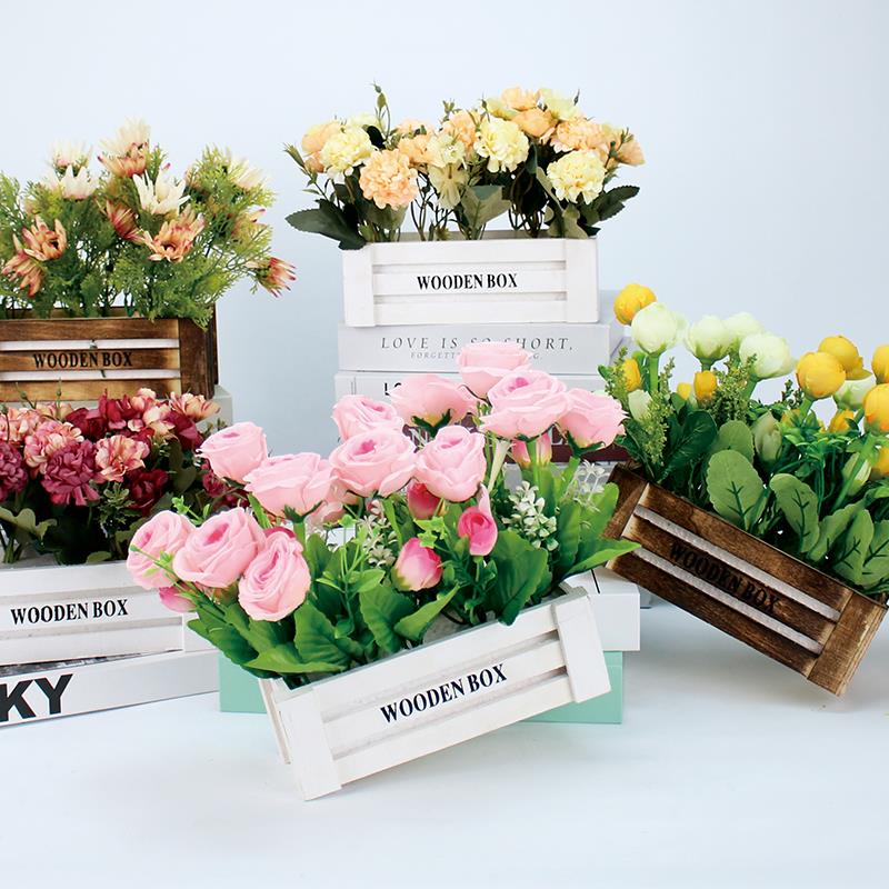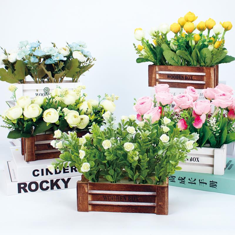 景洪简易实木篮人造花盆花卉家居假花饰品空调冰箱装饰超市展示饰