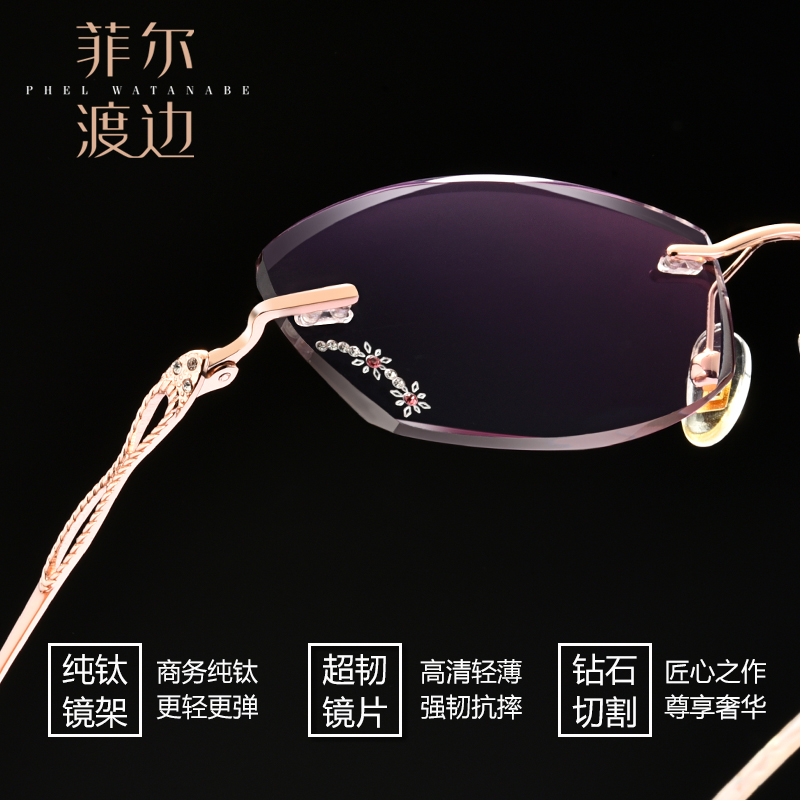 超轻钻石切边无框近视眼镜女时尚无框镜架配眼镜有度数钛架10208