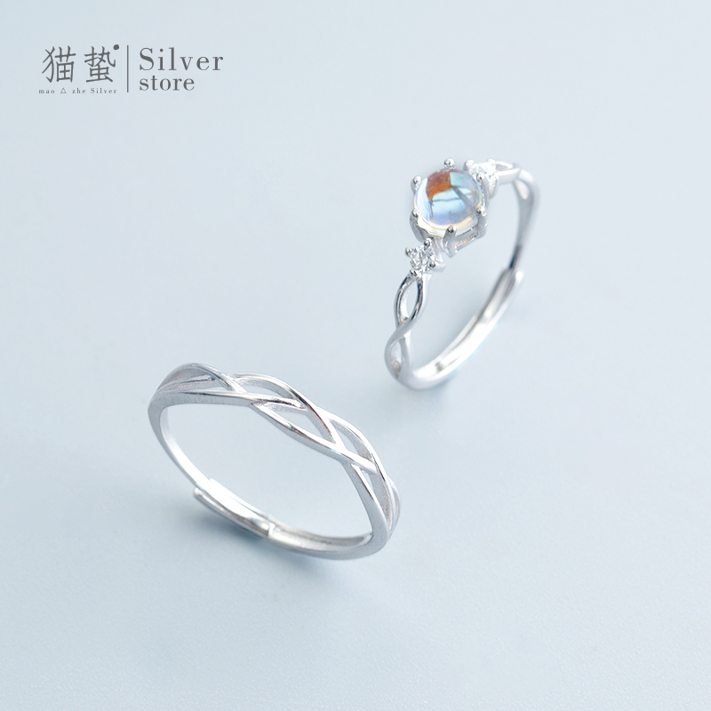 猫蛰S925纯银琉璃情侣戒指一对小众设计简约七夕情人节礼物送女友