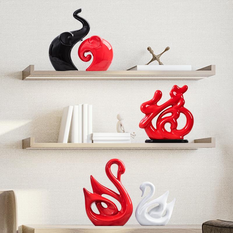 现代陶瓷摆件客厅电视酒柜家居玄关装饰品乔迁之喜红色入户新居