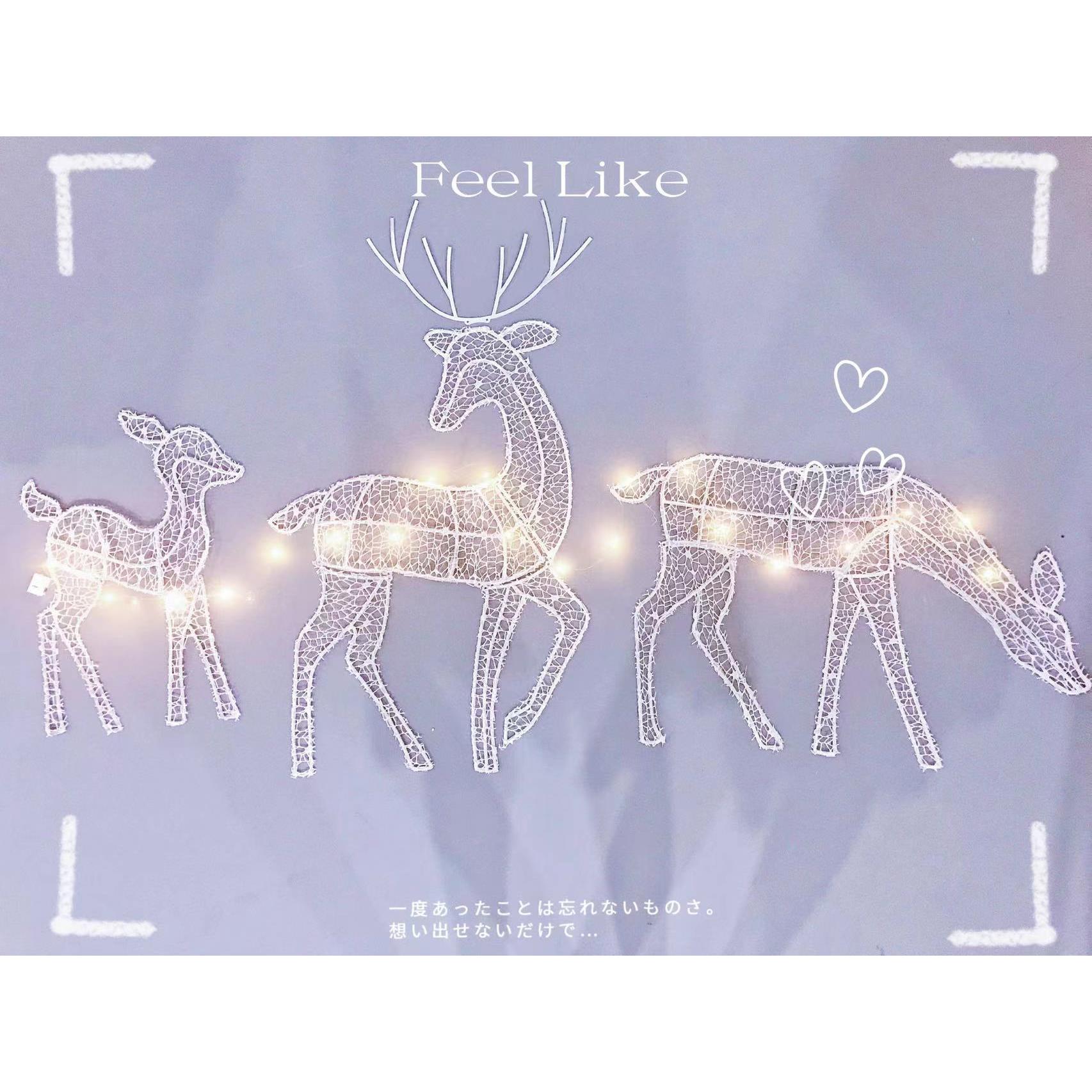 现货跨境圣诞鹿家3件套白色闪光母鹿小鹿大型圣诞饰品可发光摆件