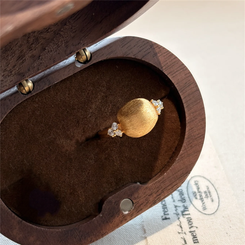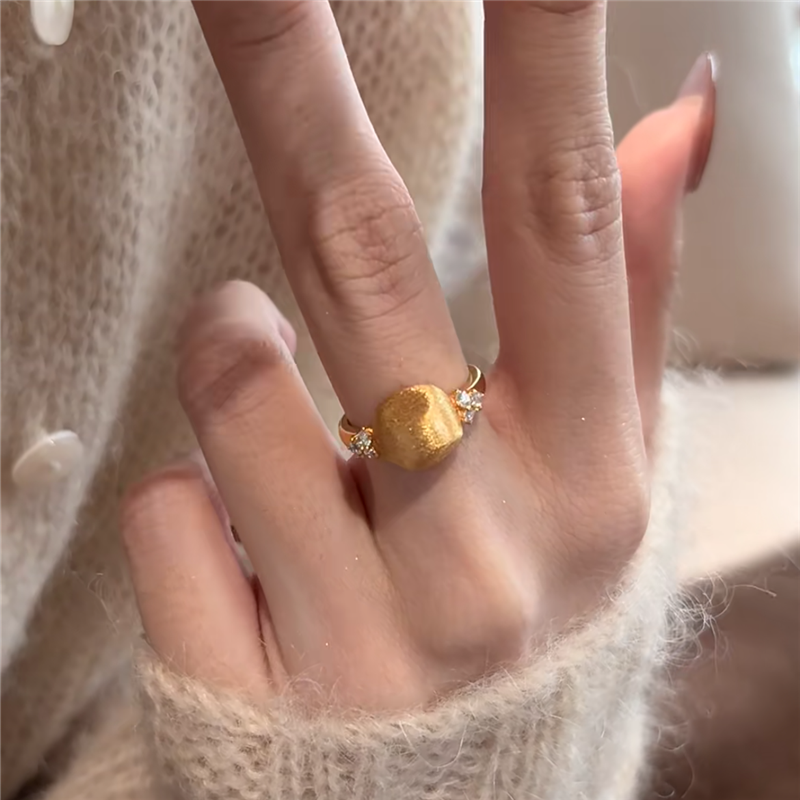 古法沙金拉丝意大利小金豆戒指女黄金色微镶点钻方形小馒头食指戒