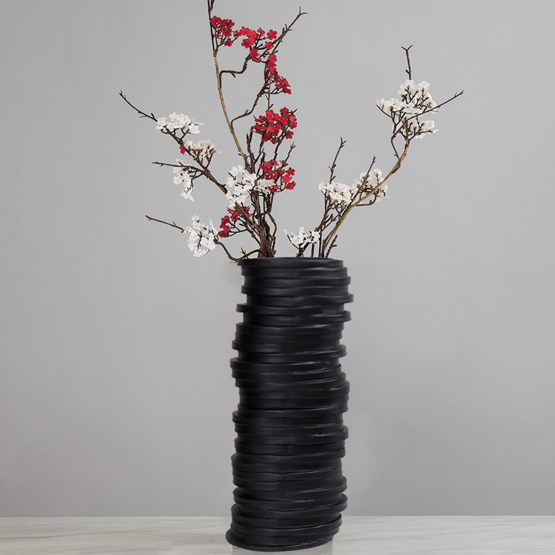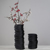现代陶瓷艺术黑色圆环层叠花器摆件样板间客厅玄关桌面装饰品