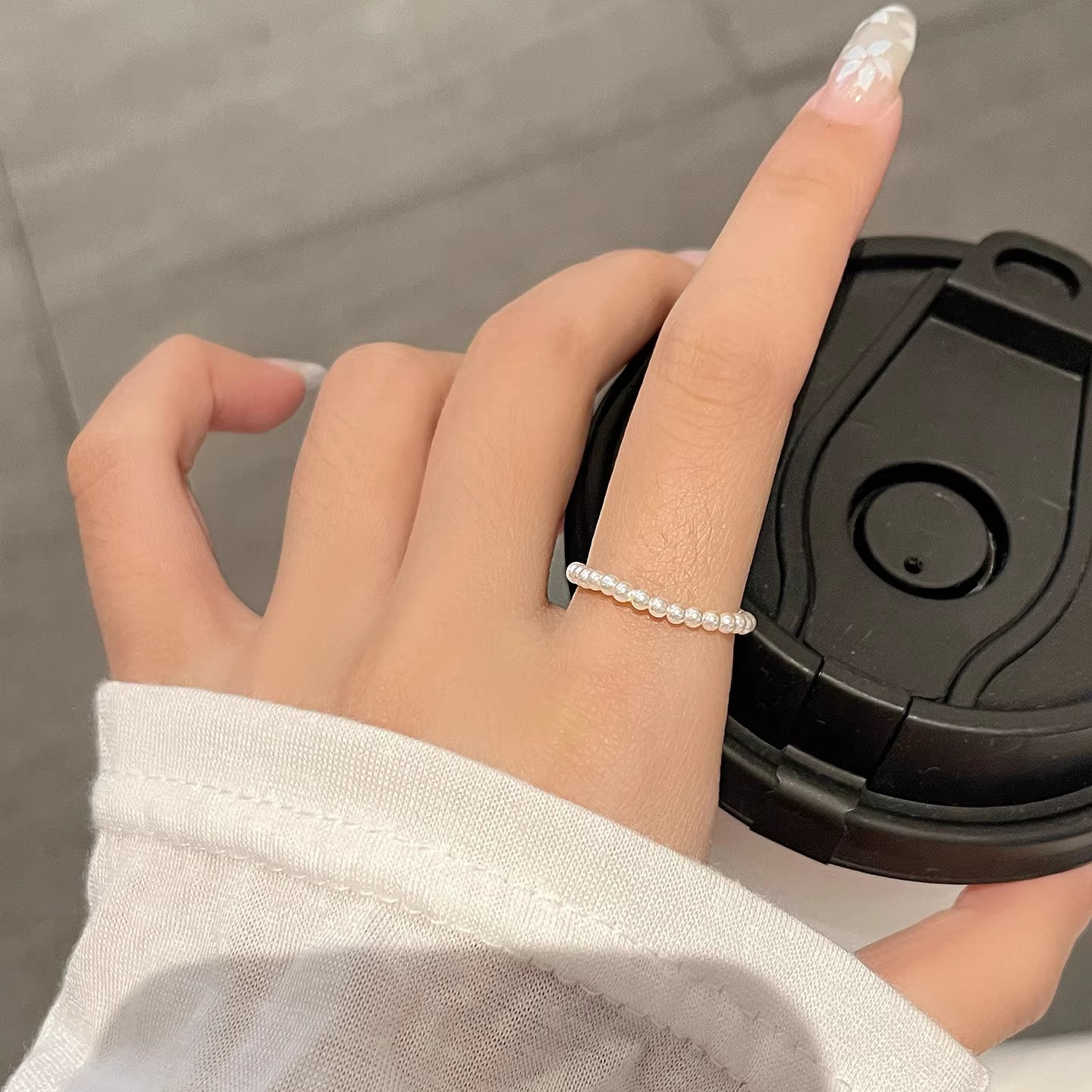 超精致!中古vintage方形珍珠叠戴戒指女轻奢高级感复古指环食指戒