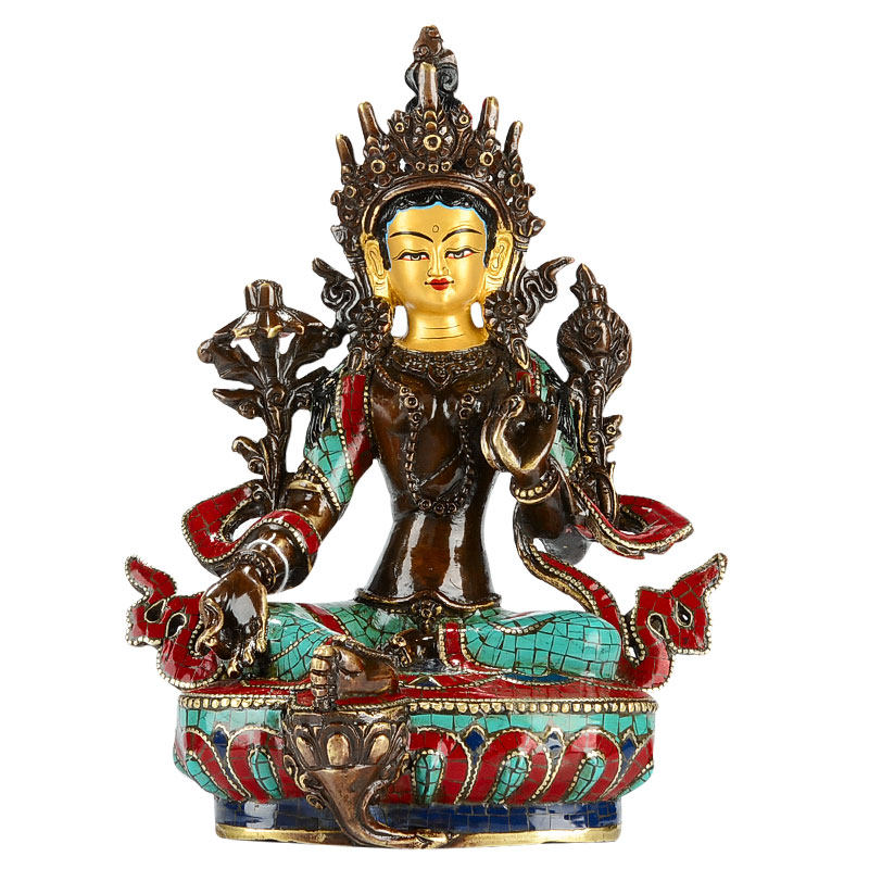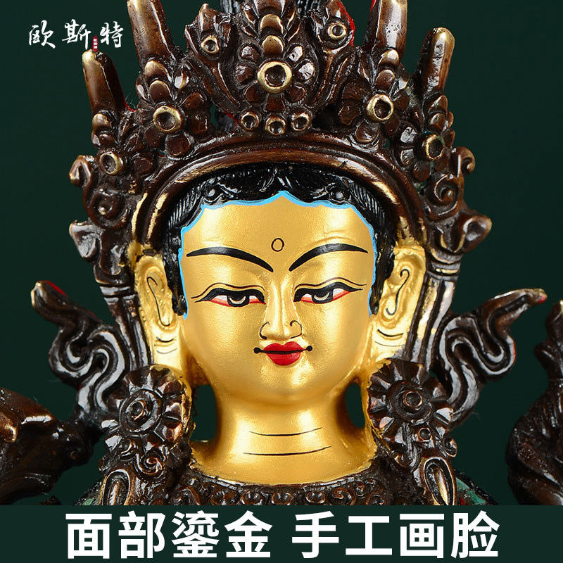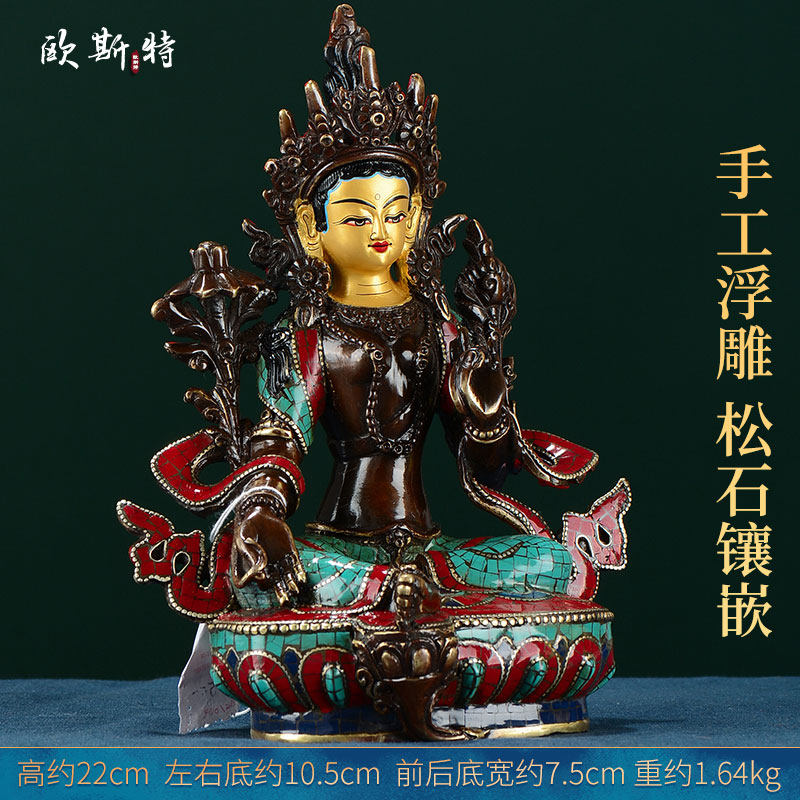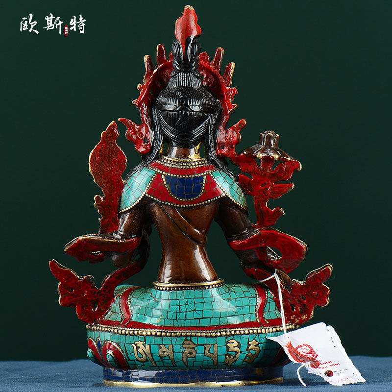 欧斯特绿度母摆件 尼泊尔手工镶松石 西家用乔迁新居家居客厅铜像