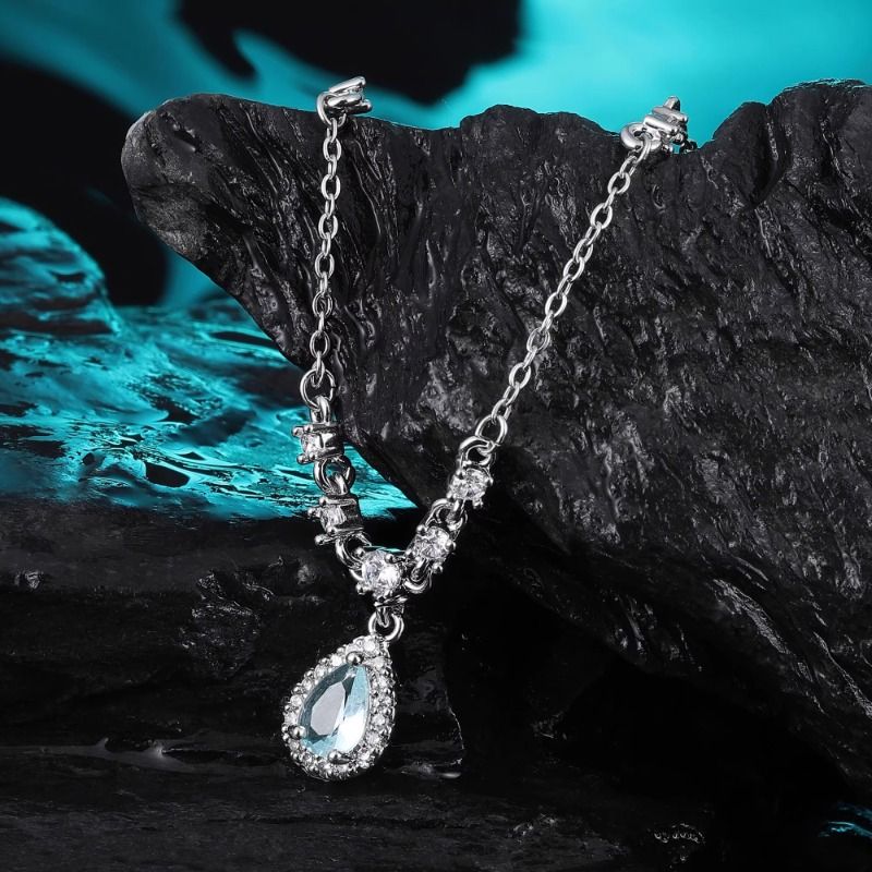 人鱼之泪蓝色水滴吊坠项链女款锆石毛衣链轻奢小众锁骨链秋冬配饰