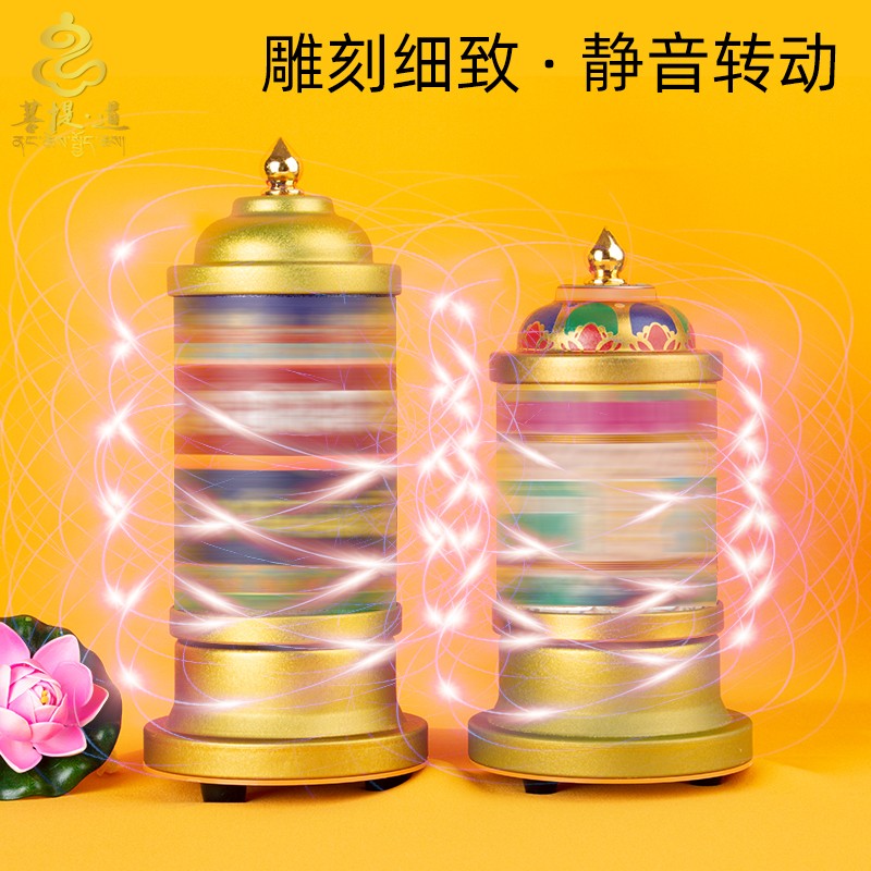 西藏电动转轮转金桶小多吉客厅桌面摆件家用插电转金筒转金轮藏族