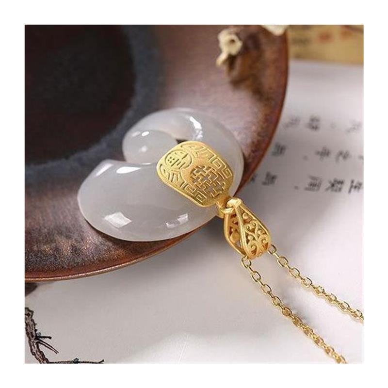 纯银古法金镶和田玉小象玉石吊坠女中国风复古水晶锁骨项链