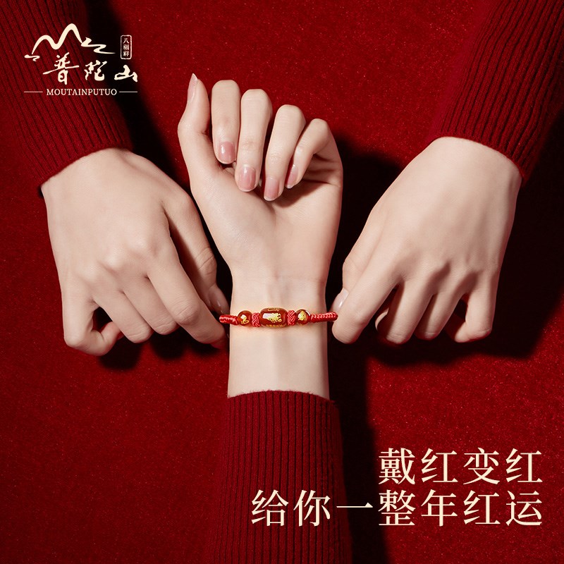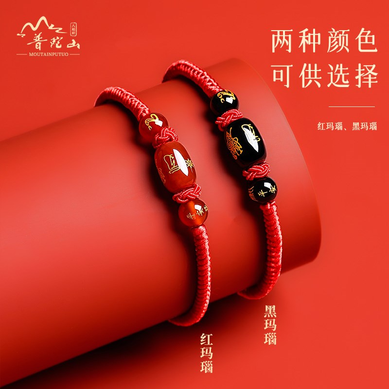 普陀山属猪红绳手链2025蛇年太岁化符红手绳红色编织绳小红绳