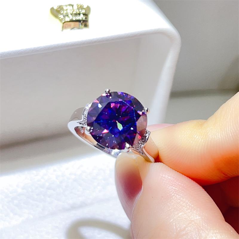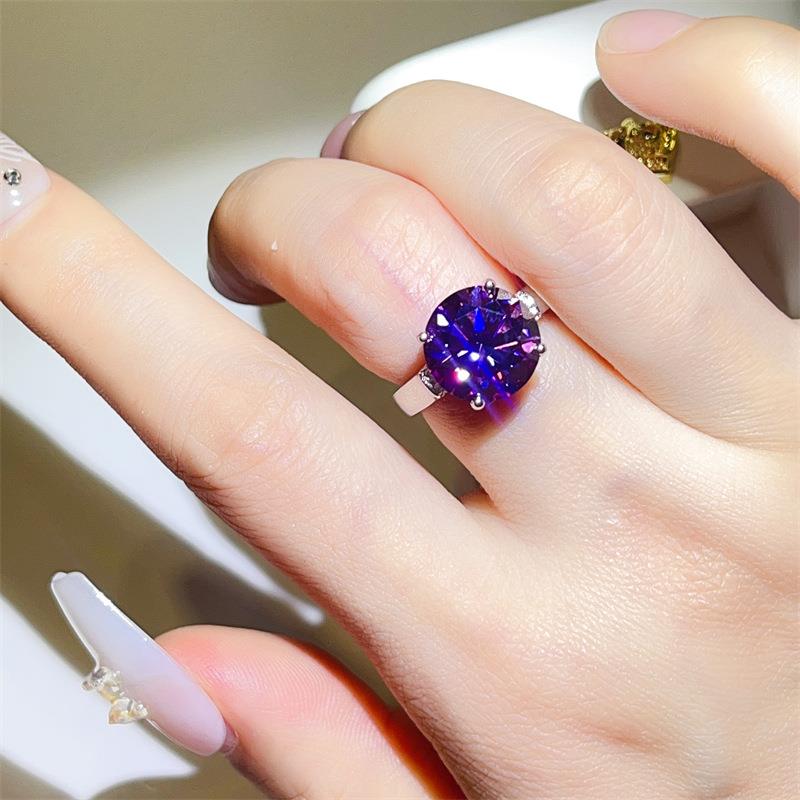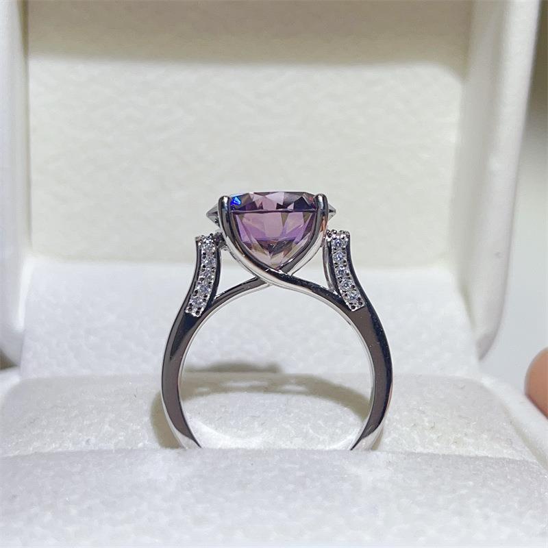 爆款紫色微镶四爪款莫桑石钻戒女时尚款紫色钻子八心八剪过测钻笔