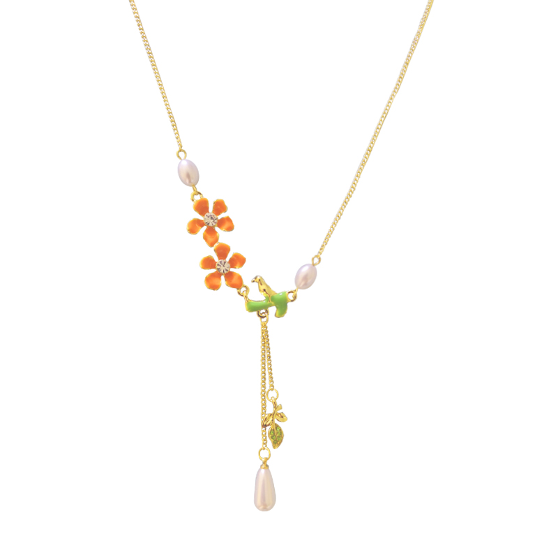 气质甜美花朵滴油项链女2024年新款爆款小众轻奢高级感锁骨链颈链