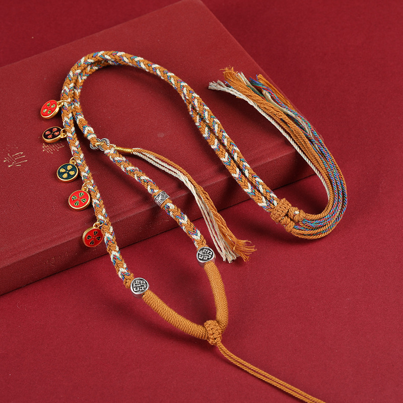五路财神项链藏式手工编织棉鞋八股编织吊坠项链唐卡挂绳佛牌吊坠