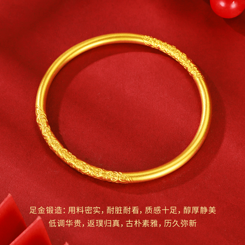 中国黄金古法足金卷草纹手镯女款镯子纯金送女友生日中秋礼物