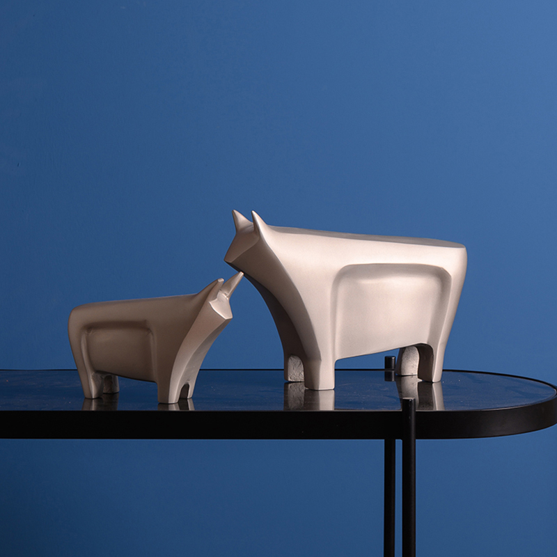 简约现代创意轻奢金属动物牛摆件样板间售楼处客厅玄关桌面装饰品