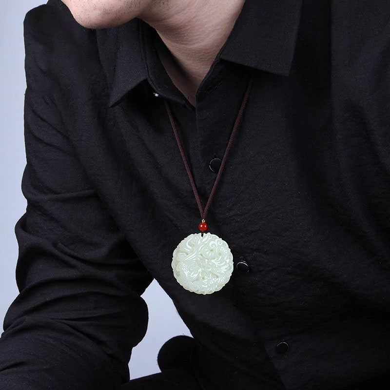 天然正品和田玉吊坠男女本命年龙凤玉佩玉石玉坠龙凤呈祥挂件挂坠