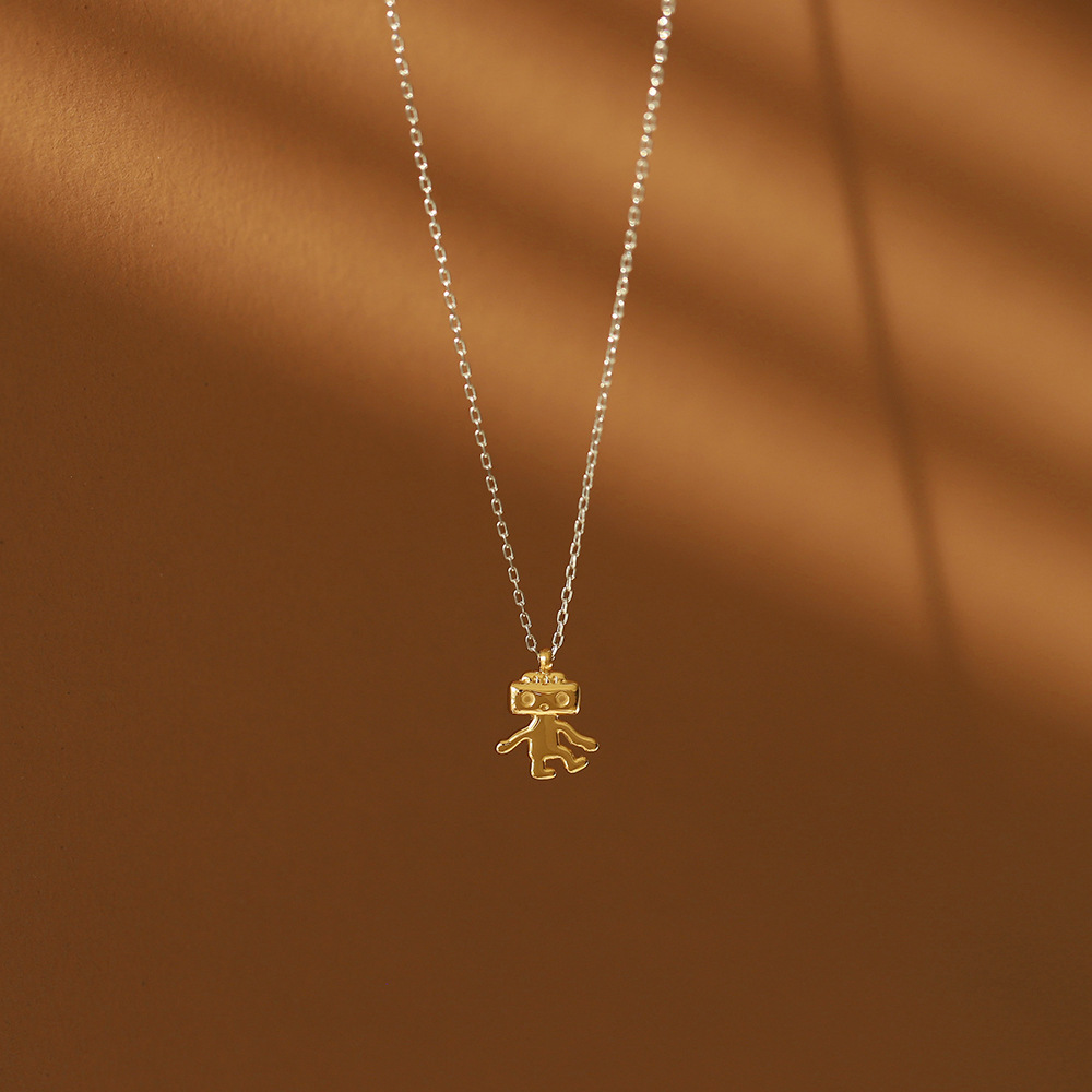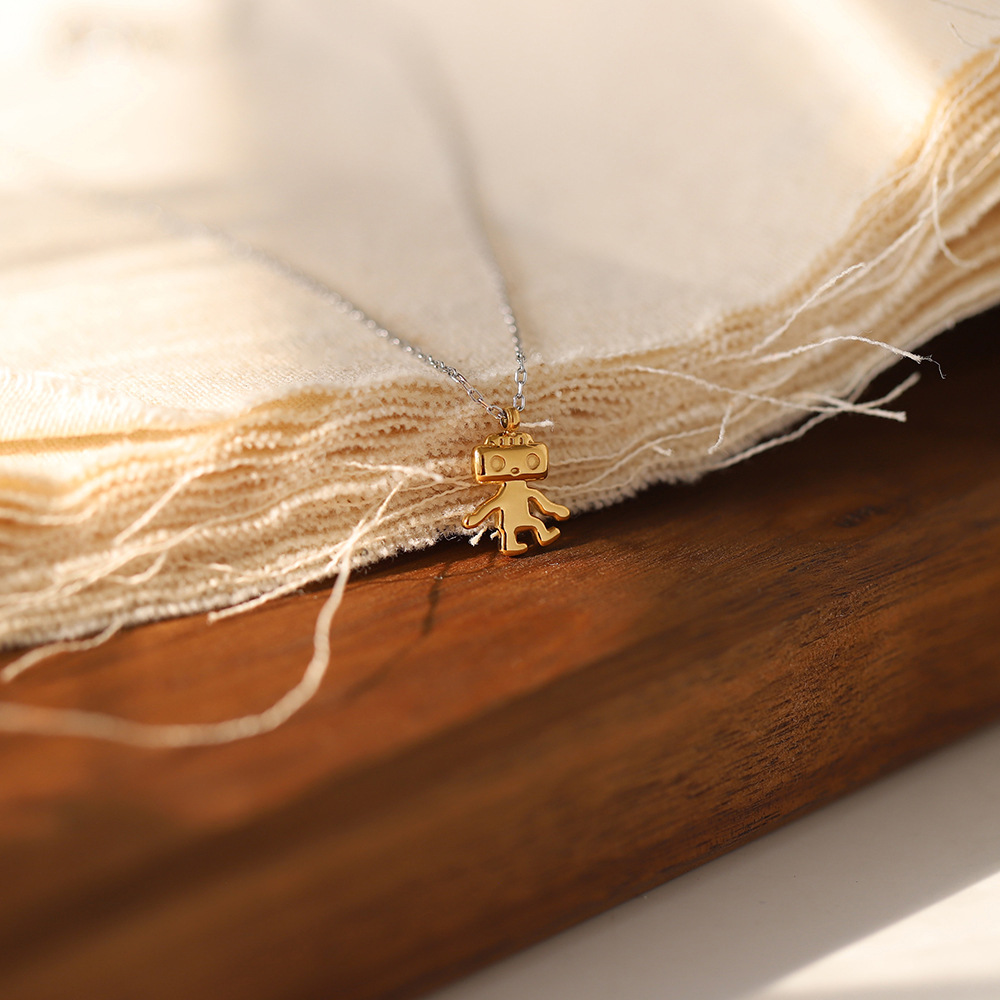 XL486 Cute萌萌哒机器人风格锁骨链钛钢镀18K金迷你撞色项链首饰