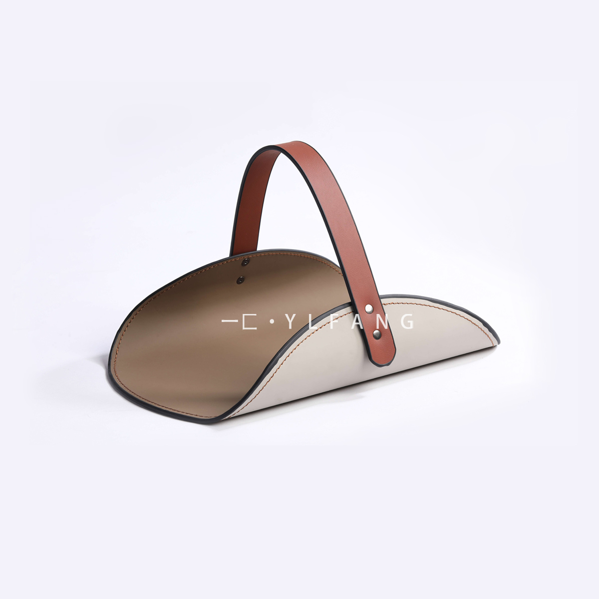 一匚 现代极简棕色编织纹组合摆件 样板间酒店储物盒手提托盘钟表