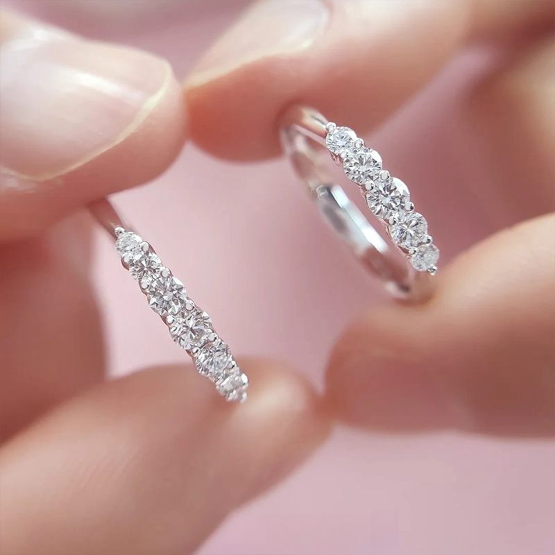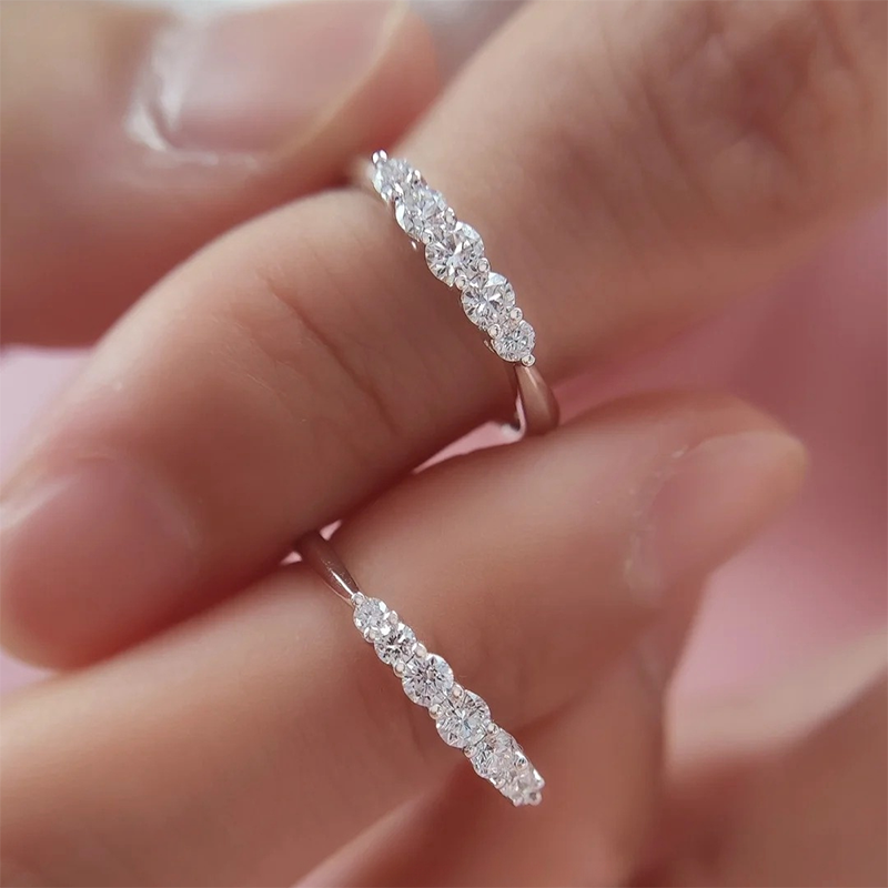 YUDANDUN莫桑戒指五公主钻戒排戒五钻镶嵌百搭简约优雅日常通勤女