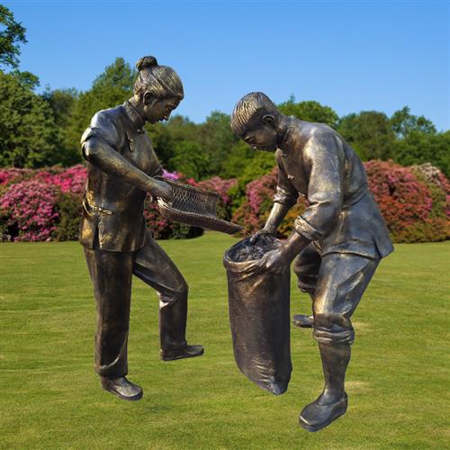 玻璃钢铸铜雕塑农耕文化传统人物雕像公园广场草坪景观装饰摆件