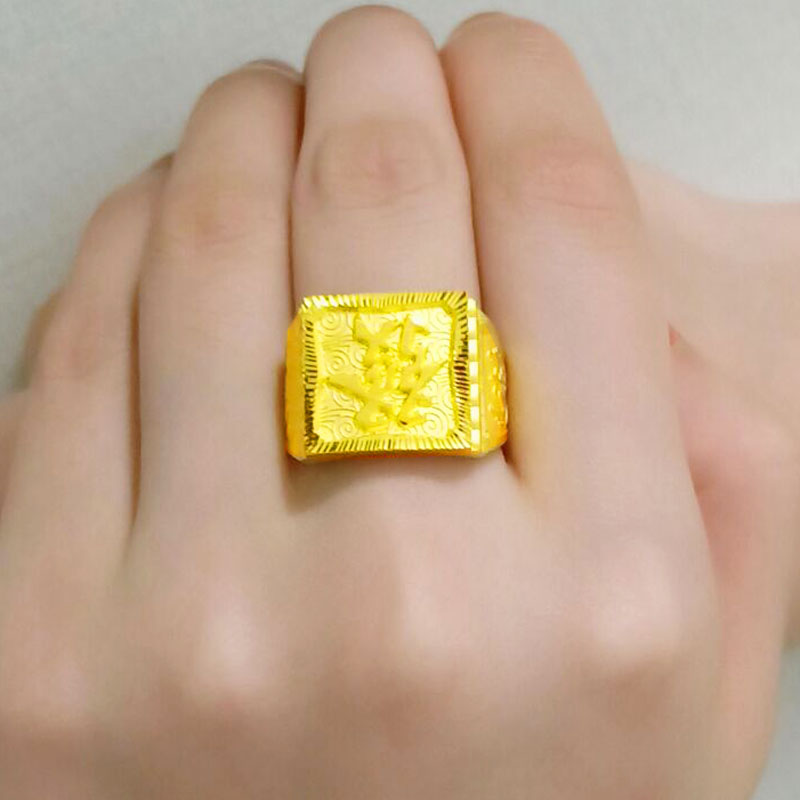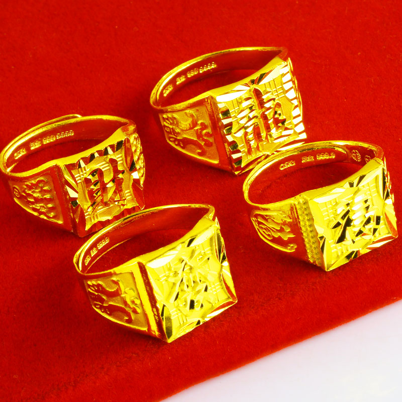 黄金戒指9999足金男女士发财字大方戒重纯金扳指真金子送老公