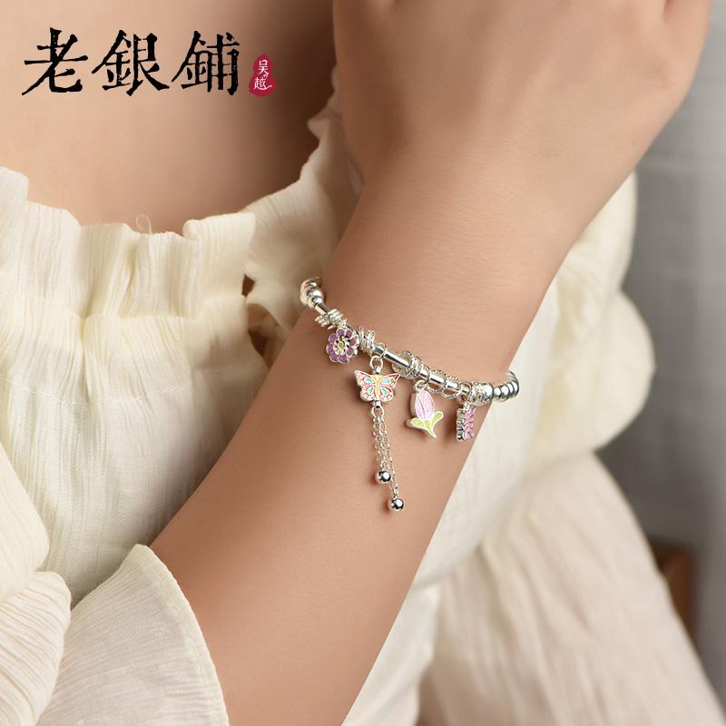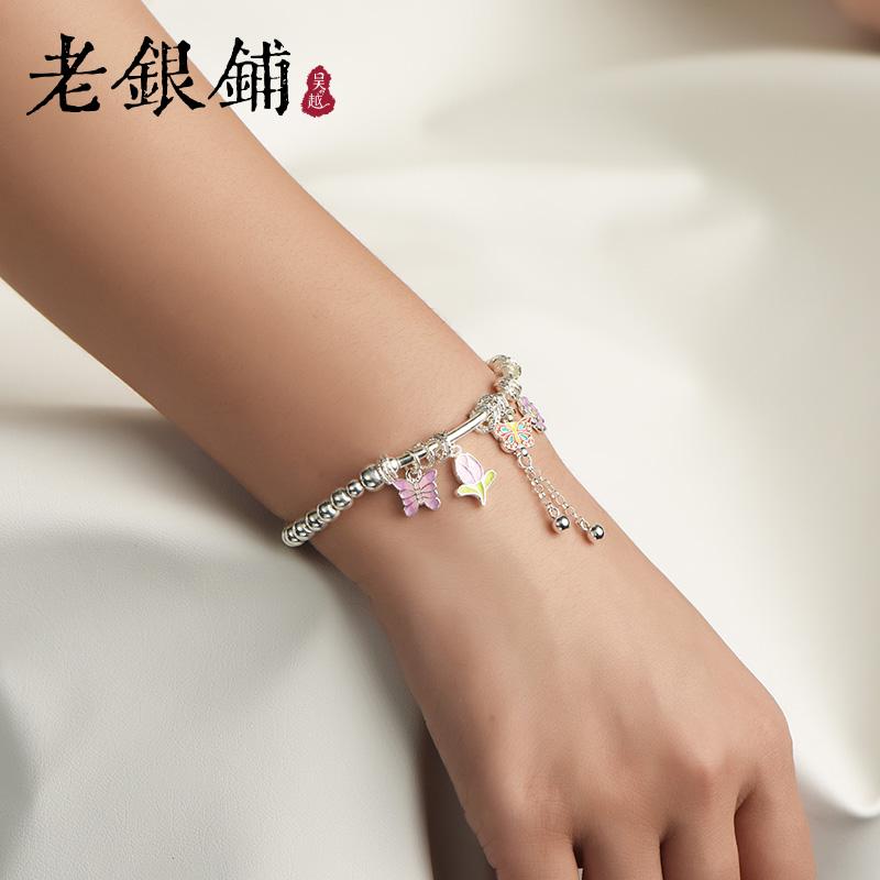 吴越老银铺串珠蝴蝶纯银手链别致设计感珐琅流苏手串轻奢别致手饰