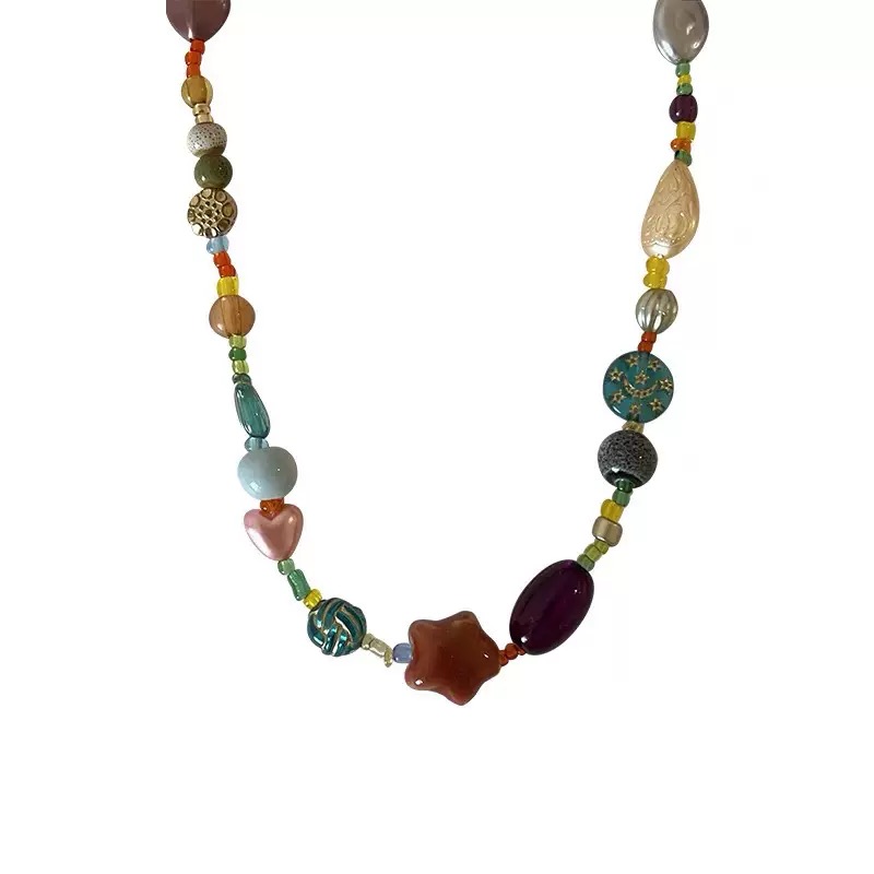 民族风多巴胺彩色串珠项链女海边氛围感锁骨链小众高级感颈链配饰