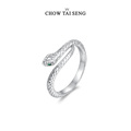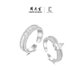 周大生情侣对戒竹节活口戒指纯银可调节大小圈口生日礼物送女友