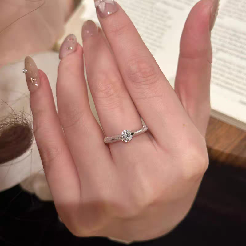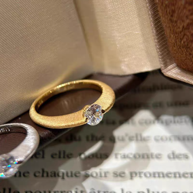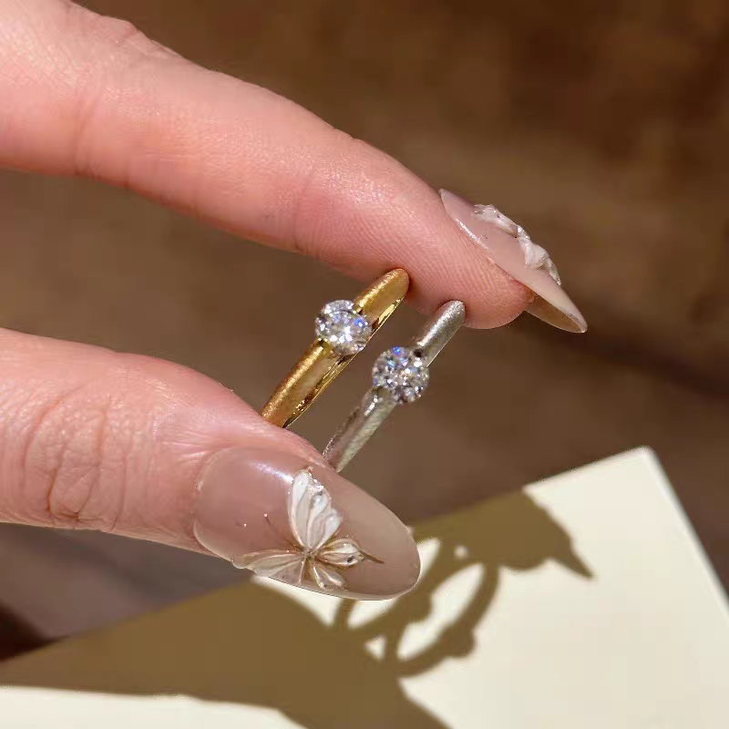 高保色金色拉丝锆石戒指女轻奢小众高级感食指戒精致简约百搭指环