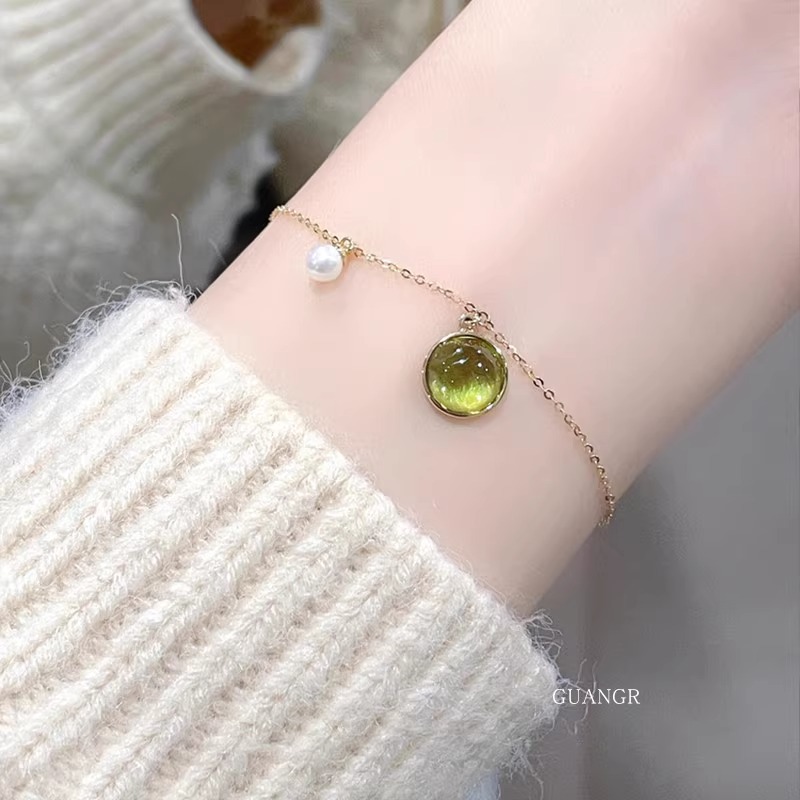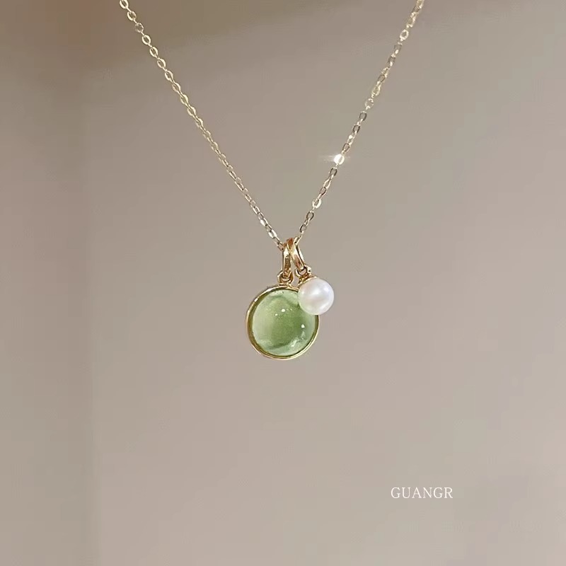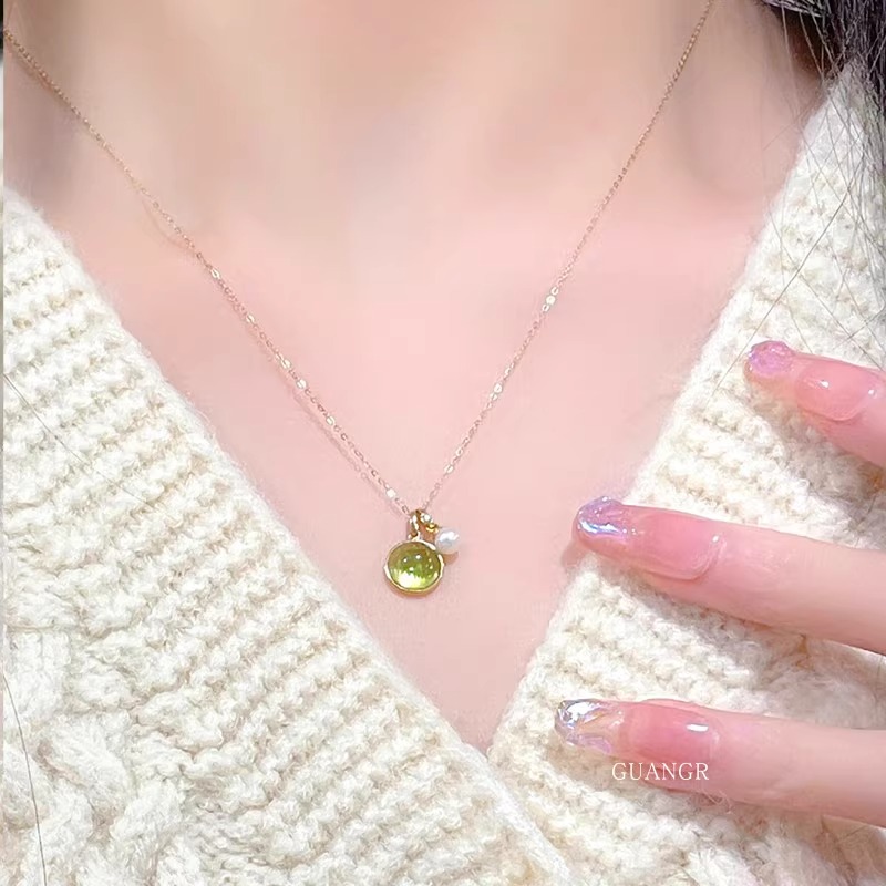 925纯银天然橄榄石淡水珍珠项链女2024新款轻奢小众高级感锁骨链