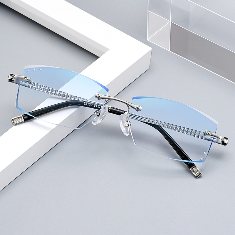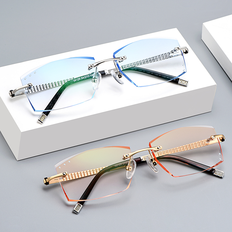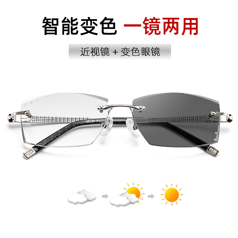 配无框钻石切边近视眼镜眼镜男防蓝光成品散光眼镜架度数变色眼镜