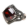原创小众设计戒指女网红纯银大红宝石宫廷文艺复古方石榴石食指环