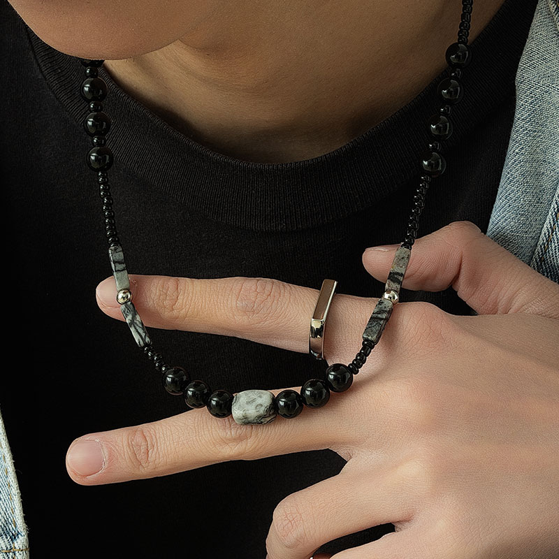 ACITY喜城新中式天然石串珠项链男小众黑色拼接锁骨链高级感配饰