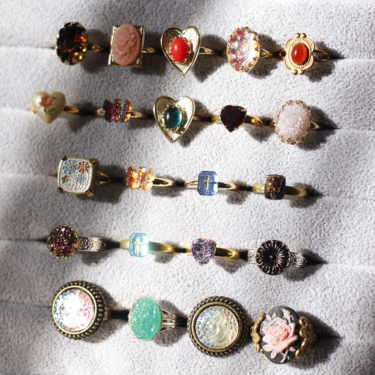 如意|欧美带回流中古董老琉璃宝石珐琅雕刻人像cameo可调节戒指女