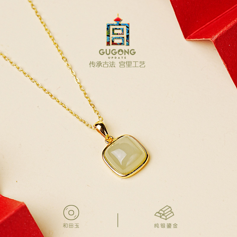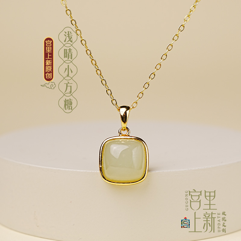 宫里上新方糖项链女款纯银和田玉吊坠玉石玉坠高级感妈妈生日礼物