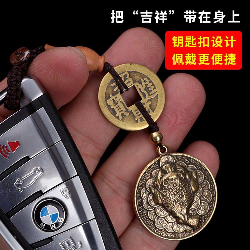 2026马年生肖属牛吉祥物挂件佩戴宝蟾驼瓶黄铜汽车钥匙扣男女吊坠