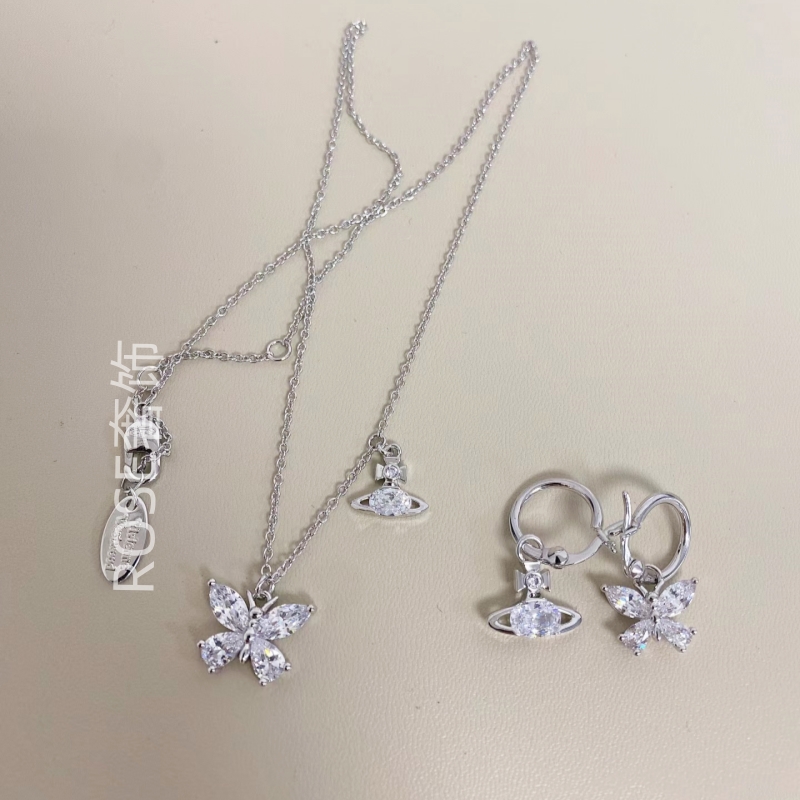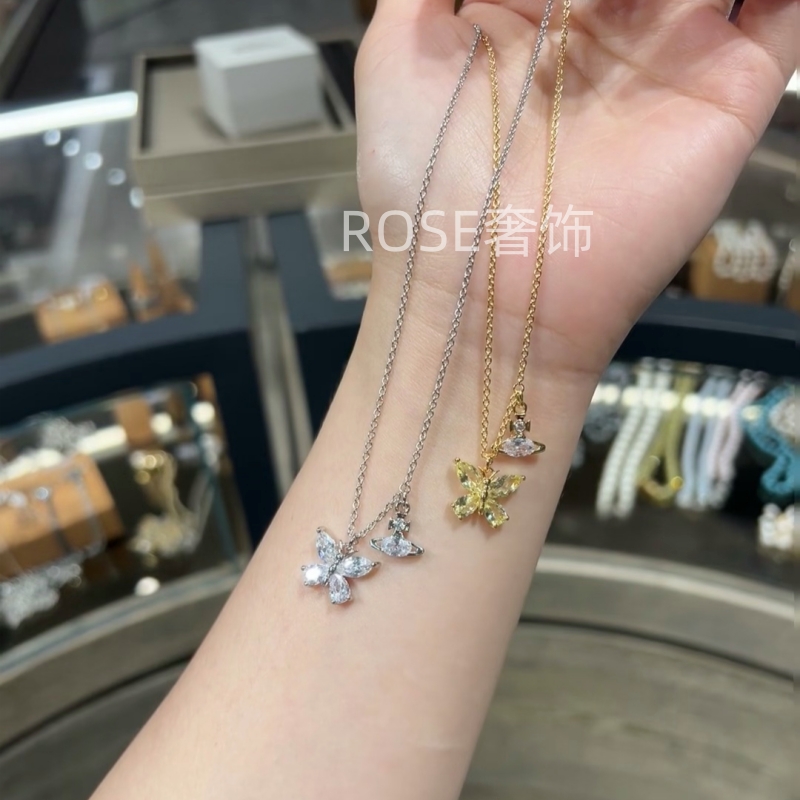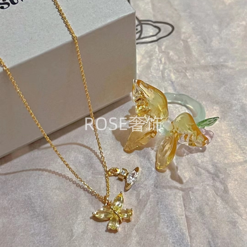 新款夏日搭配黄色蝴蝶小土星项链女带钻气质显白锁骨链耳钉