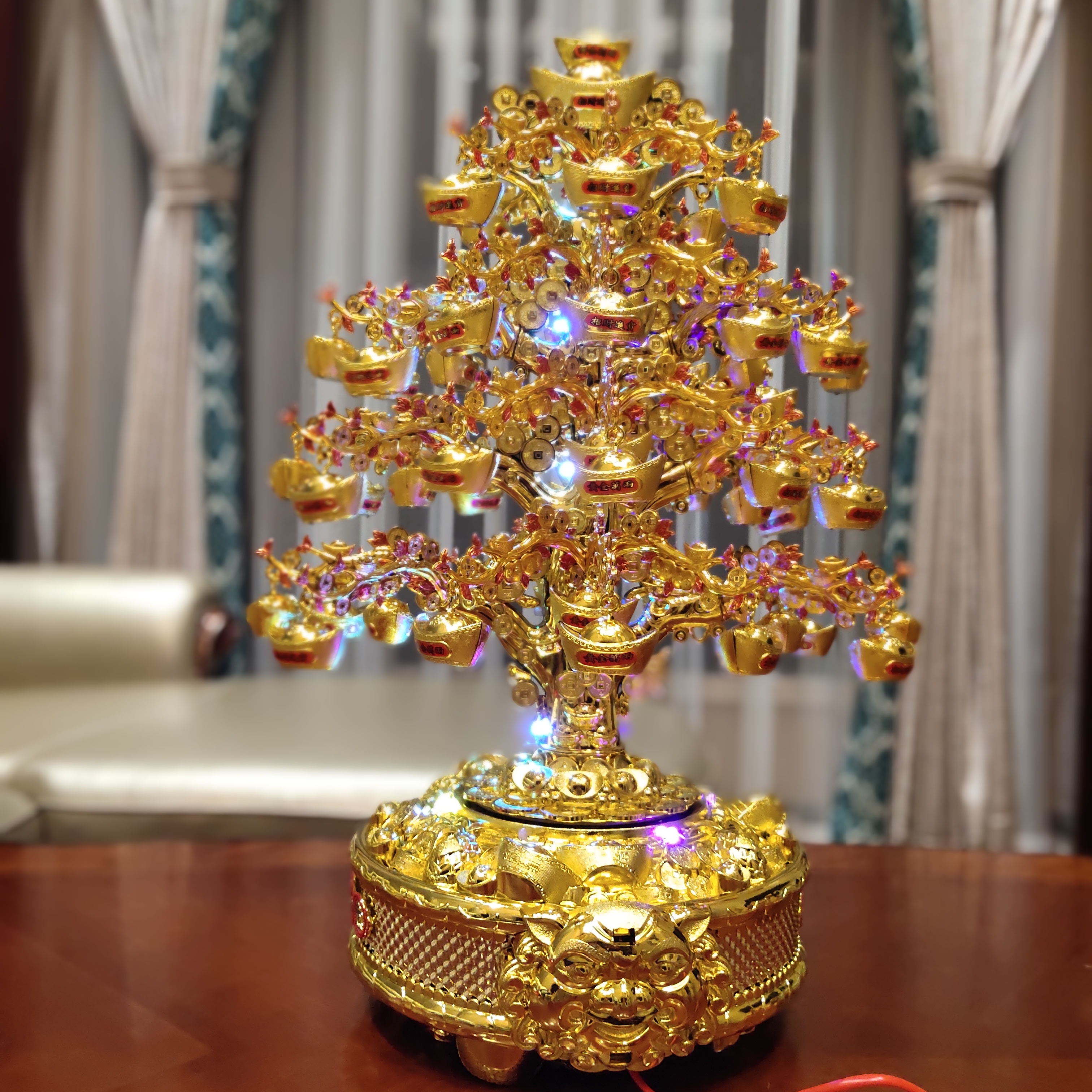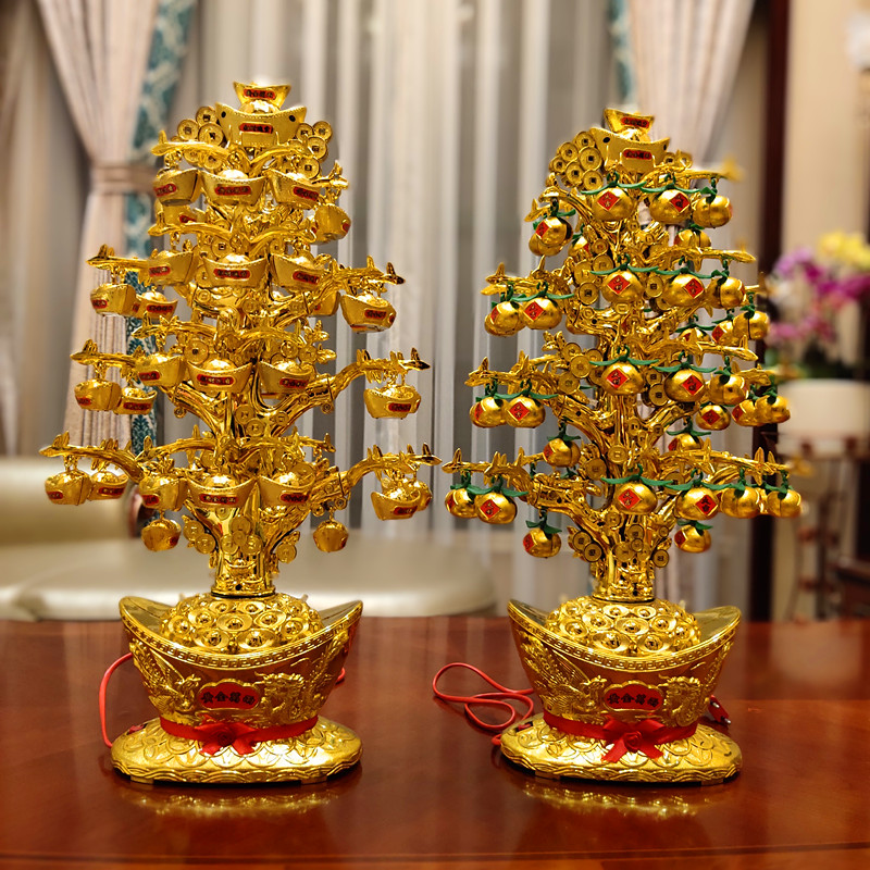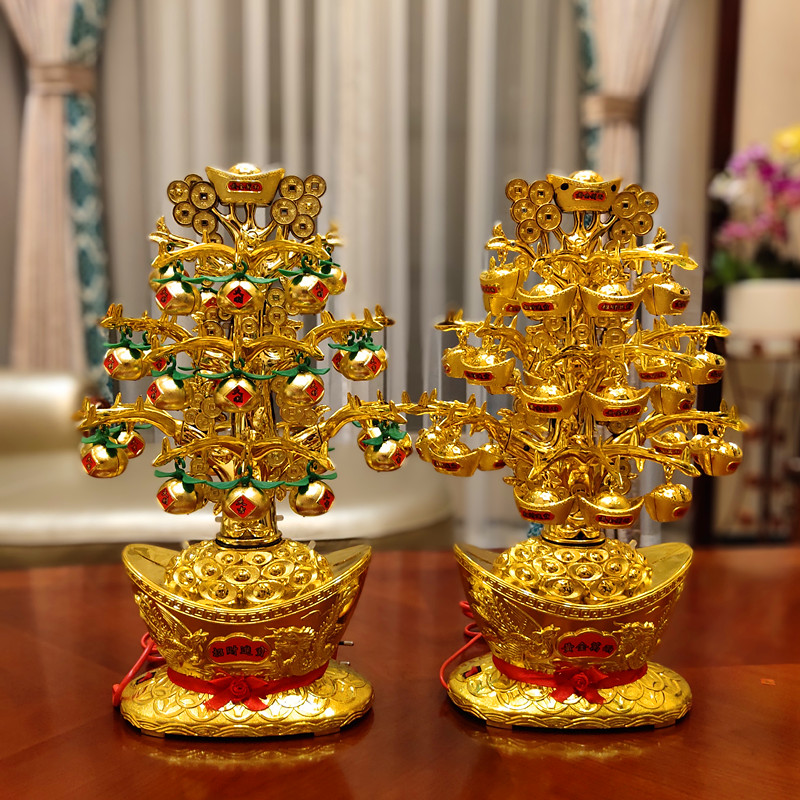 金元宝摆件可旋转带灯光 招财摇钱树大号 聚宝盆风水摆件开业礼品