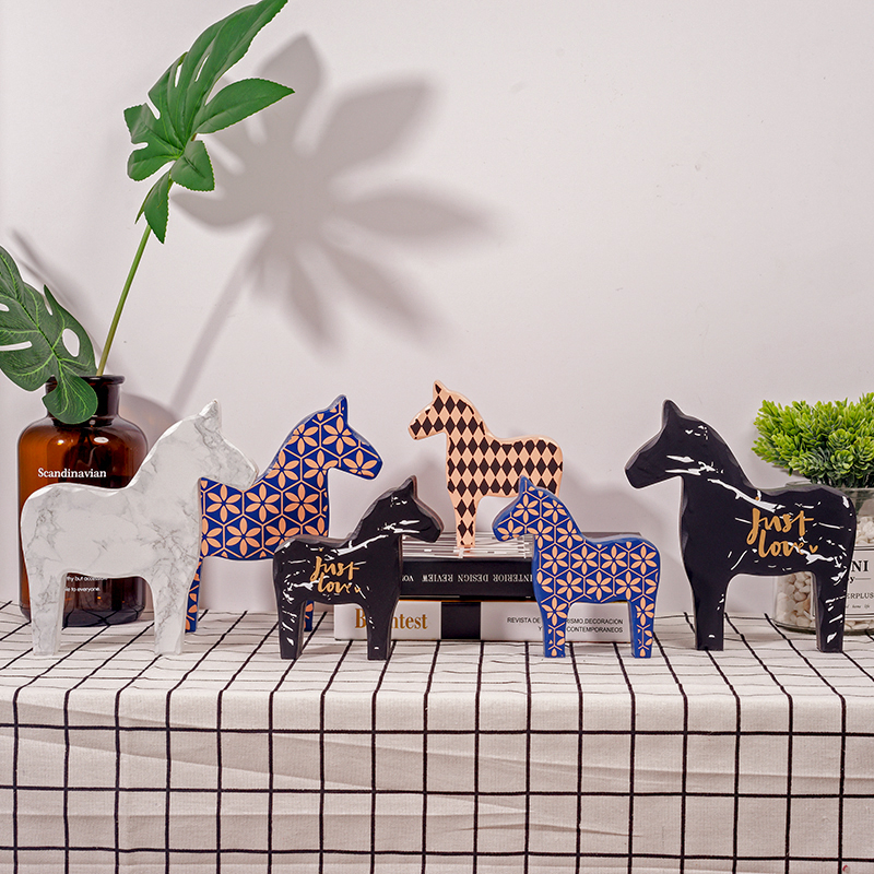 北欧风格卧室客厅玄关电视酒柜装饰品摆件创意小木马家居桌面摆设