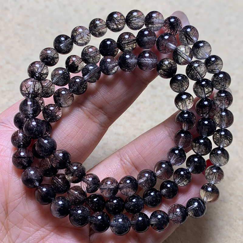 天然巴西透体黑发晶三圈手链浓密发丝黑水晶钛晶项链情侣饰品礼物