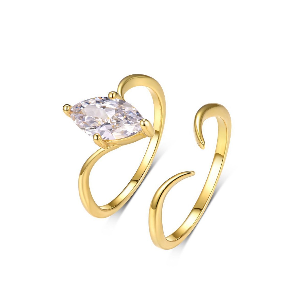 s925银套装镶嵌马眼形莫桑石戒指组合热卖时尚优雅款叠戴INS轻奢