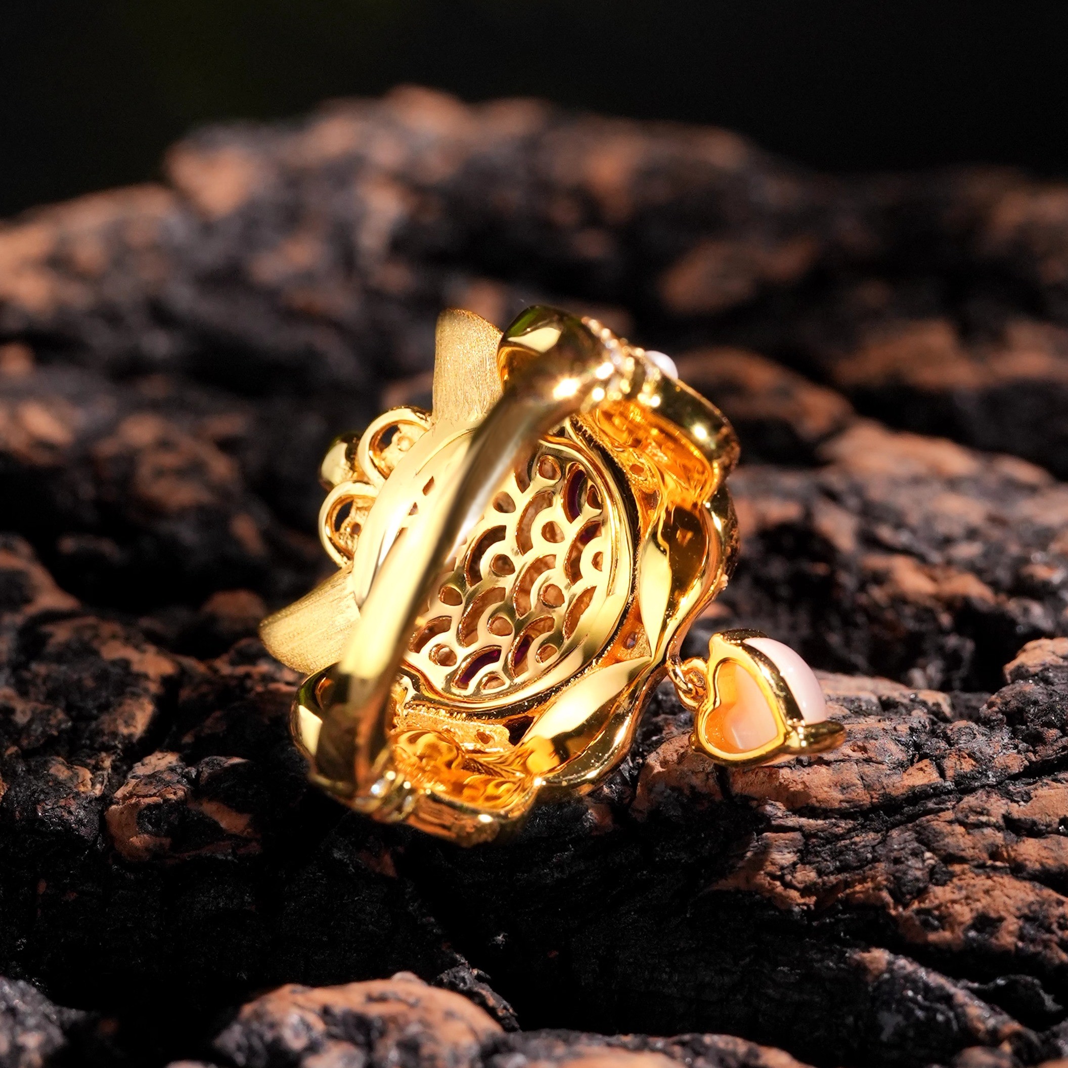 粉贝母小狐狸黄金色拉丝古法银工艺好人缘戒指指环