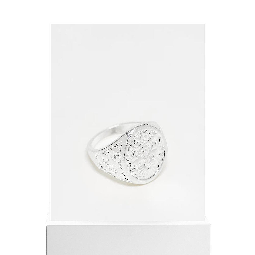 1h可退 香港直邮ASOS 男士 signet 设计压花硬币戒指(银色)